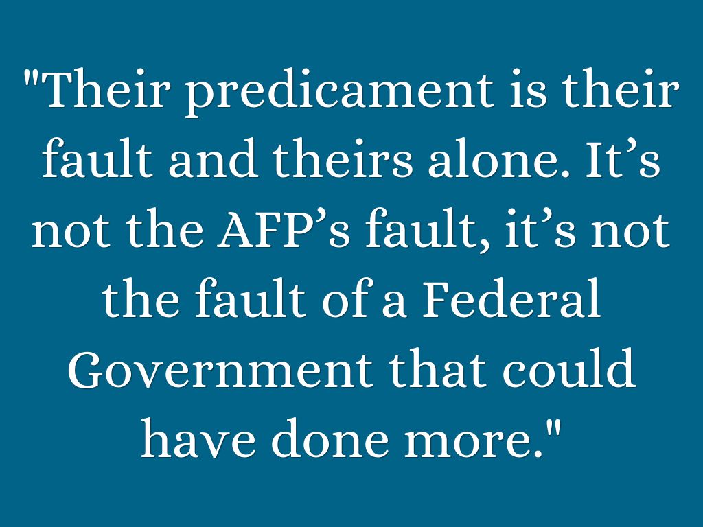 "Their predicament is their fault and theirs alone. It’s not the AFP’s fault, it’s not the fault of a Federal Government that could have done more."