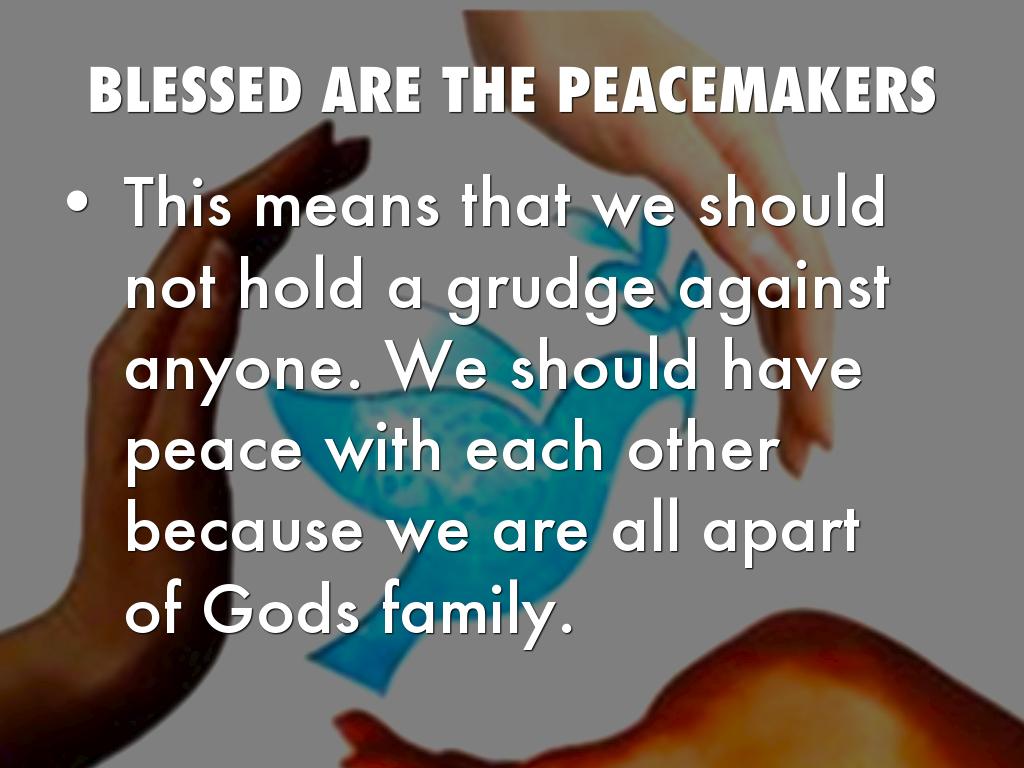 • This means that we should not hold a grudge against anyone. We should have peace with each other because we are all apart of Gods family.