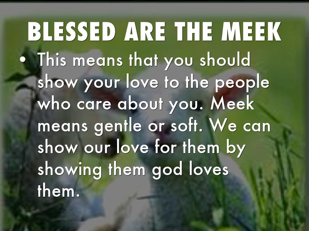 • This means that you should show your love to the people who care about you. Meek means gentle or soft. We can show our love for them by showing them god loves them.