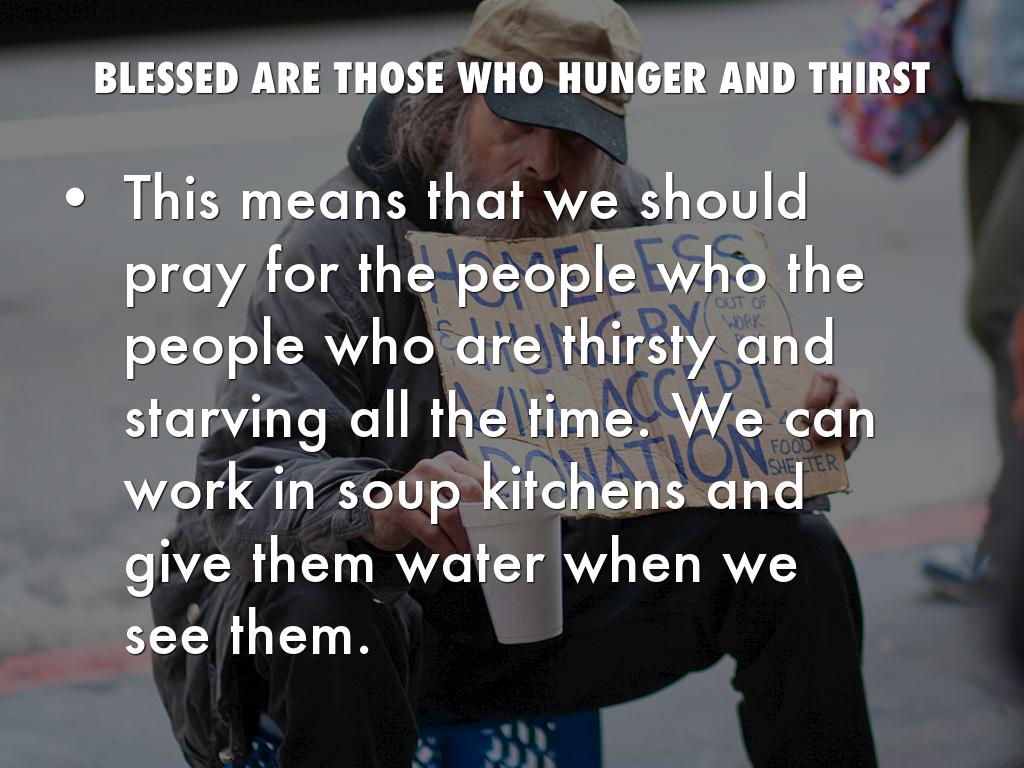 • This means that we should pray for the people who the people who are thirsty and starving all the time. We can work in soup kitchens and give them water when we see them.