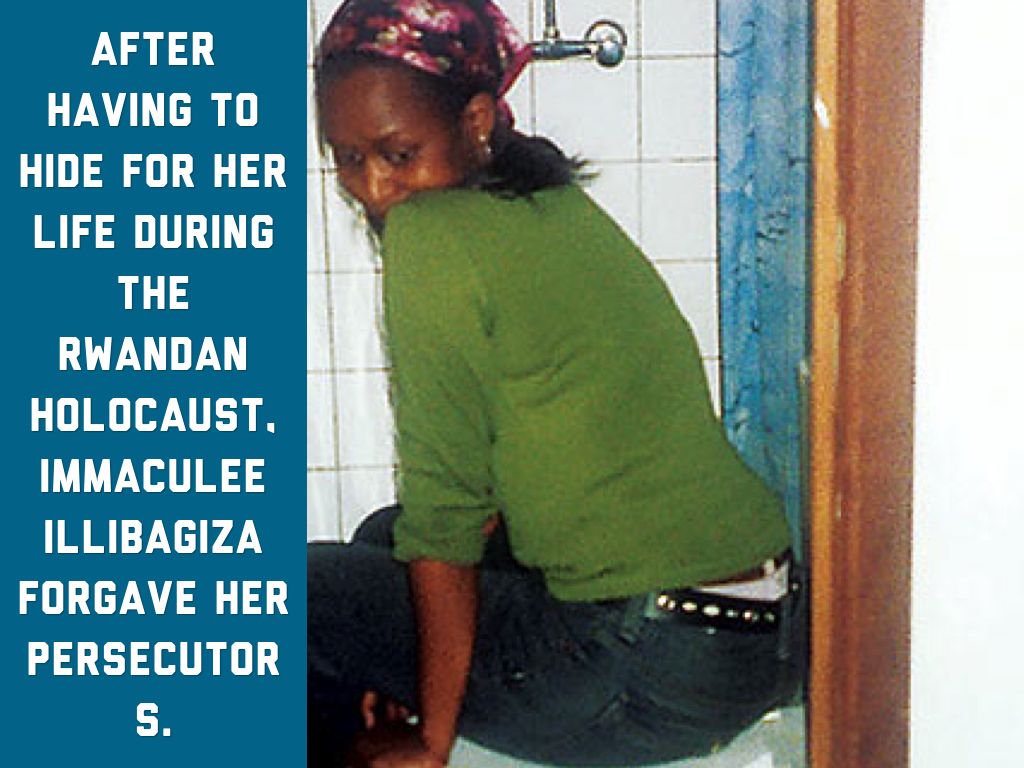 - After suffering persecution and having to hide for her life during the rwandan holocaust, immaculee illibagiza forgave those who fought against her and those who murdered her family and her people.