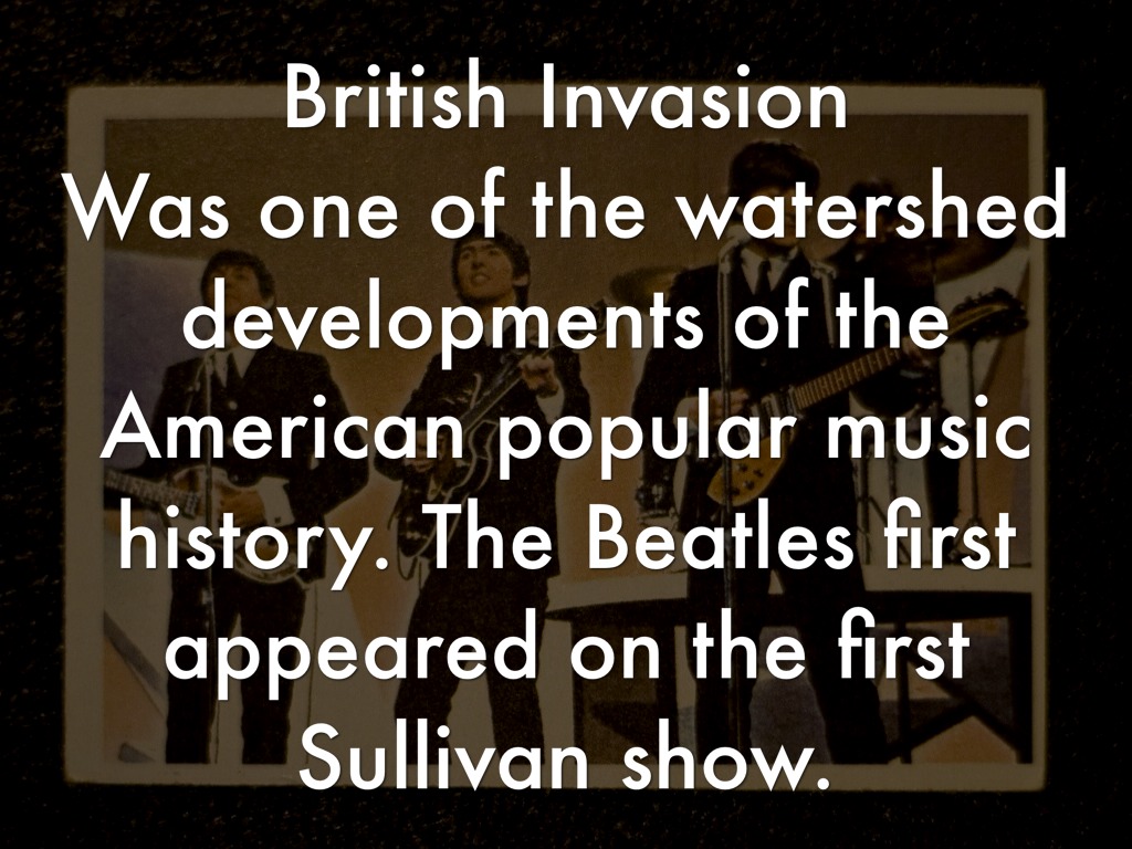 Was one of the watershed developments of the American popular music history. The Beatles first appeared on the first Sullivan show.