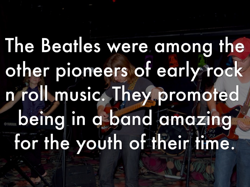 The Beatles were among the other pioneers of early rock n roll music. They promoted being in a band amazing for the youth of their time.