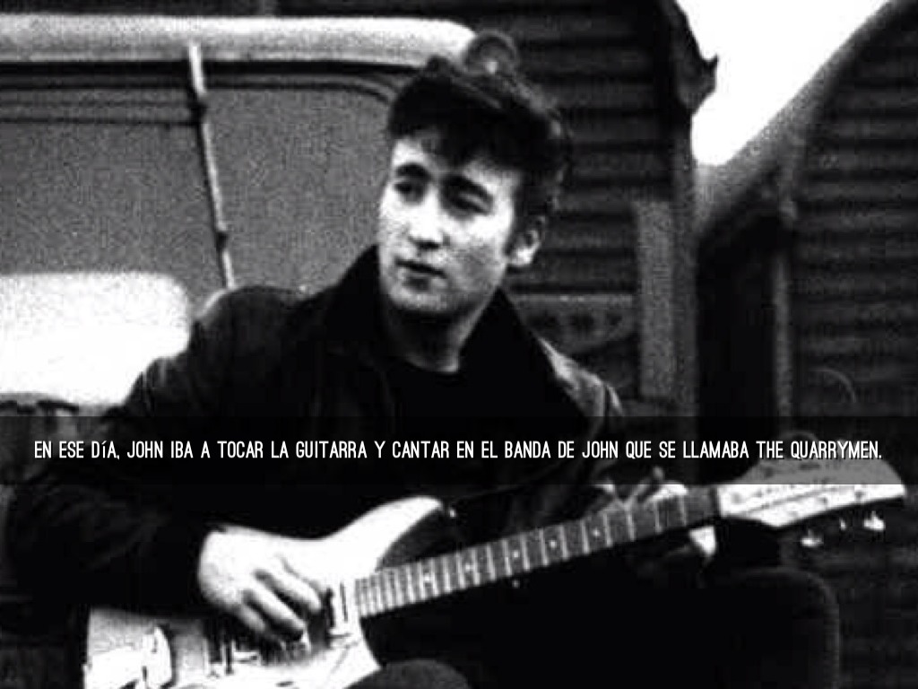 En ese día, John iba a tocar la guitarra y cantar en el banda de John que se llamaba The Quarrymen.