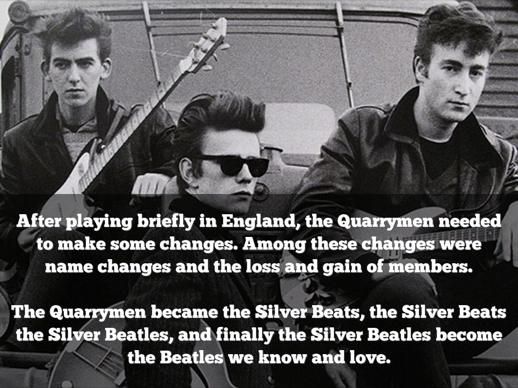 The Quarrymen became the Silver Beats, the Silver Beats the Silver Beatles, and finally the Silver Beatles become the Beatles we know and love.