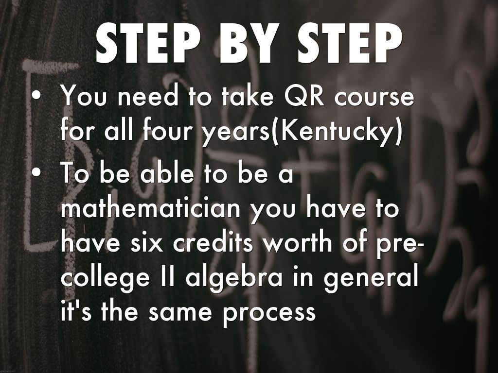 To be able to be a mathematician you have to have six credits worth of pre-college II algebra in general it's the same process