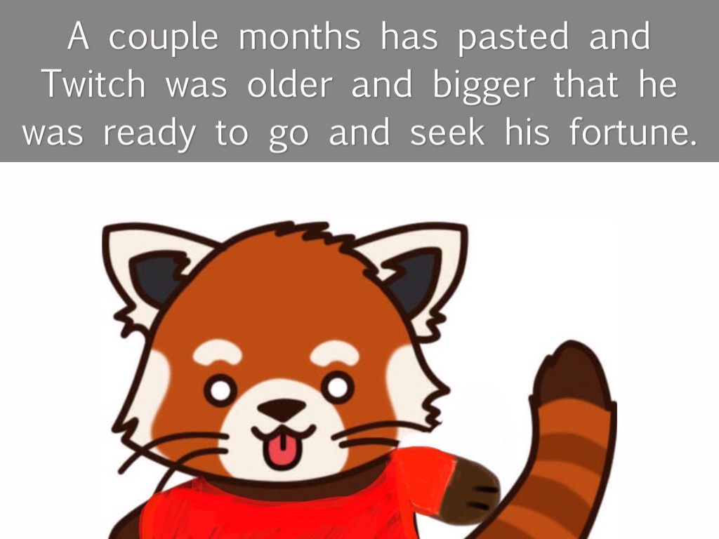 A couple months has pasted and Twitch was older and bigger that he was ready to go and seek his fortune.