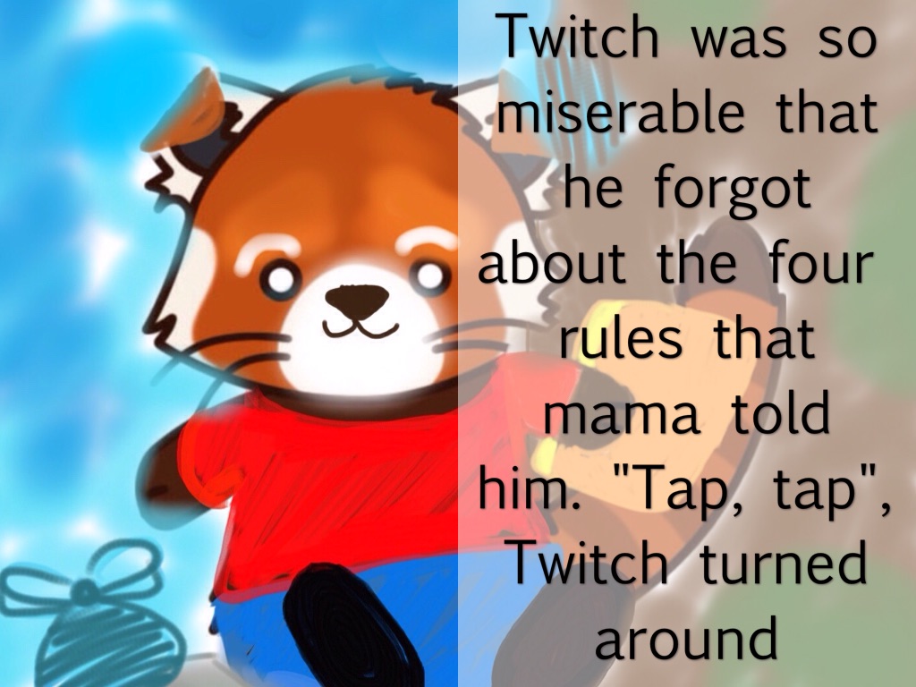 Twitch was so miserable that he forgot about the four rules that mama told him. "Tap, tap", Twitch turned around