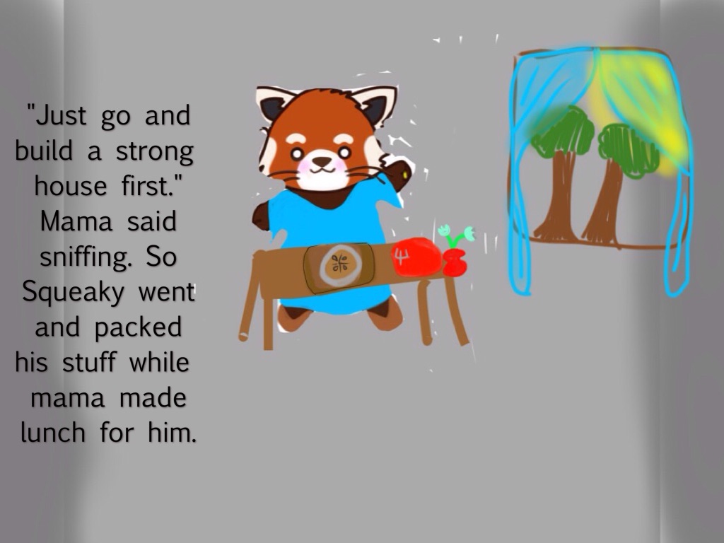 "Just go and build a strong house first." Mama said sniffing. So Squeaky went and packed his stuff while mama made lunch for him.