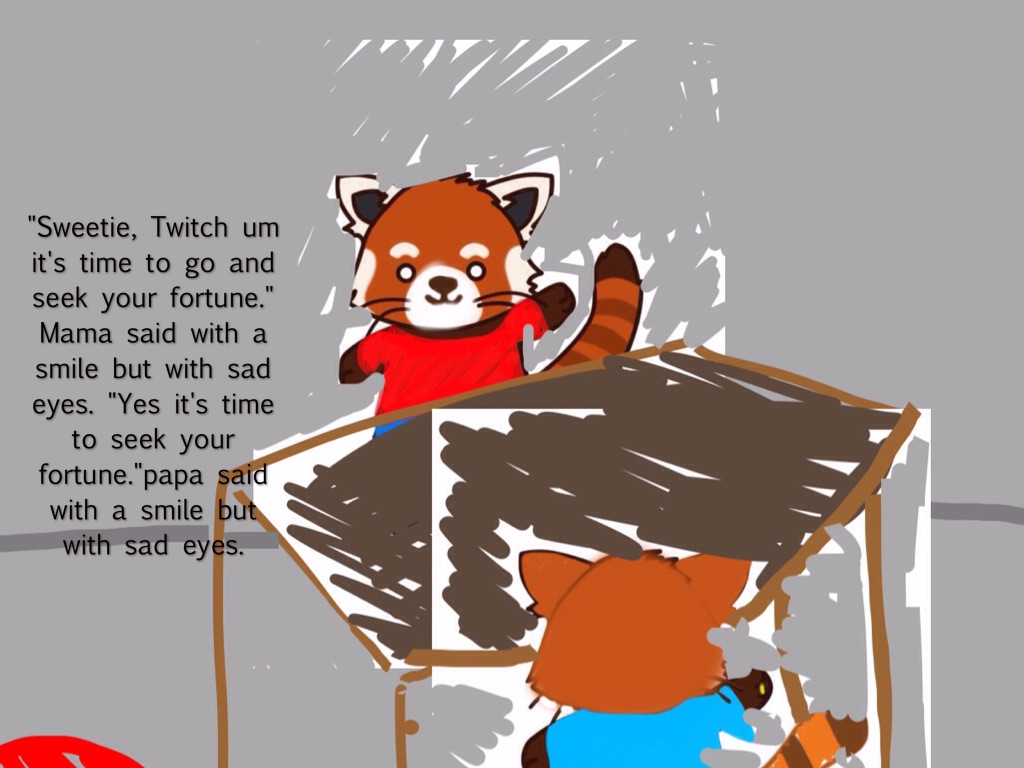 "Sweetie, Twitch um it's time to go and seek your fortune." Mama said with a smile but with sad eyes. "Yes it's time to seek your fortune."papa said with a smile but with sad eyes.