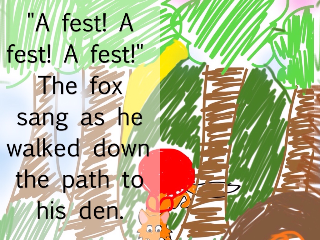 "A fest! A fest! A fest!" The fox sang as he walked down the path to his den.