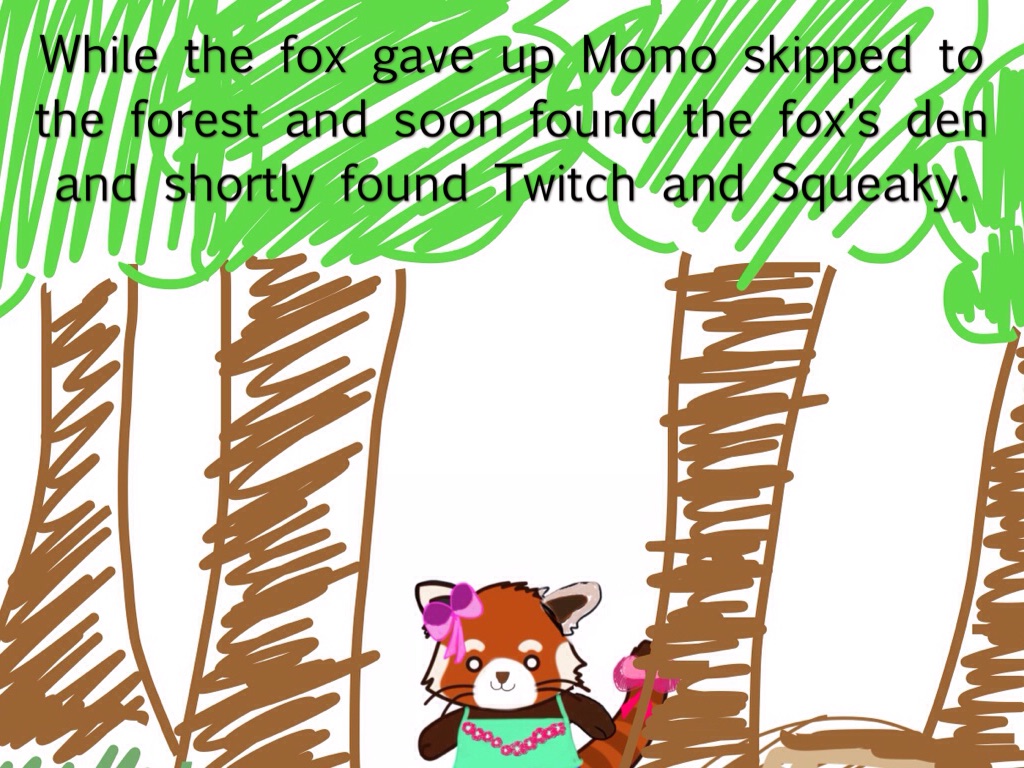 While the fox gave up Momo skipped to the forest and soon found the fox's den and shortly found Twitch and Squeaky.