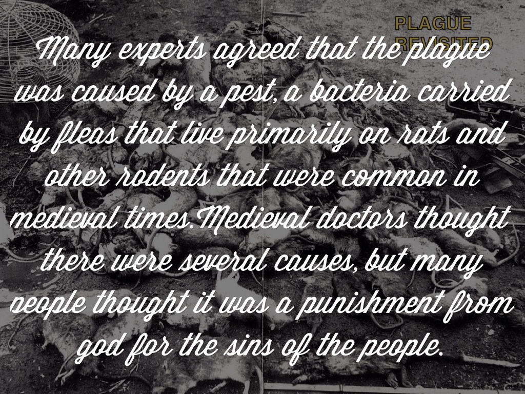 Many experts agreed that the plague was caused by a pest, a bacteria carried by fleas that live primarily on rats and other rodents that were common in medieval times.Medieval doctors thought there were several causes, but many people thought it was a punishment from god for the sins of the people.
