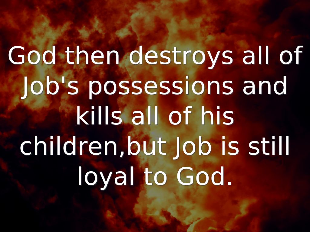 God then destroys all of Job's possessions and kills all of his children,but Job is still loyal to God.