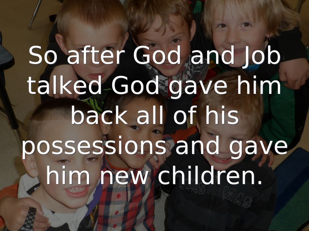 So after God and Job talked God gave him back all of his possessions and gave him new children.