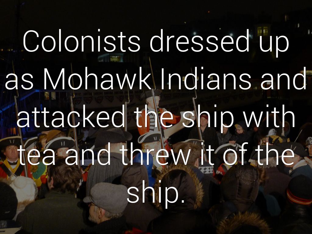 Colonists dressed up as Mohawk Indians and attacked the ship with tea and threw it off the ship.
