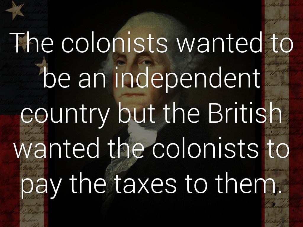 The colonists wanted to be an independent country but the British wanted the colonists to pay the taxes to them.