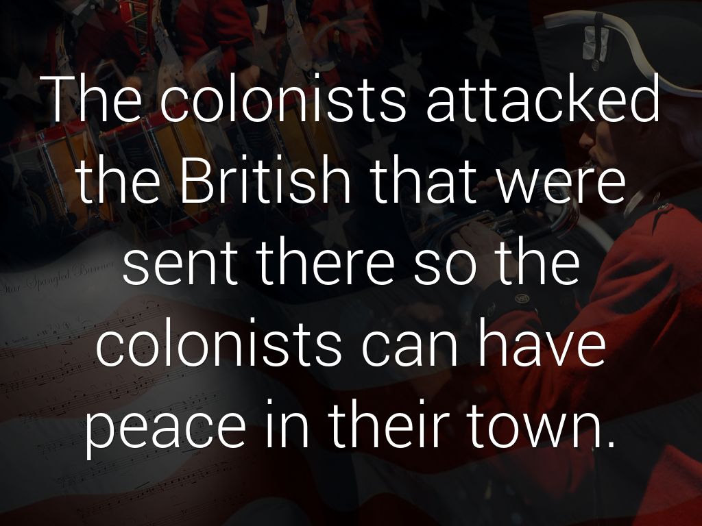 The colonists attacked the British that were sent there so the colonists can have peace in their town.
