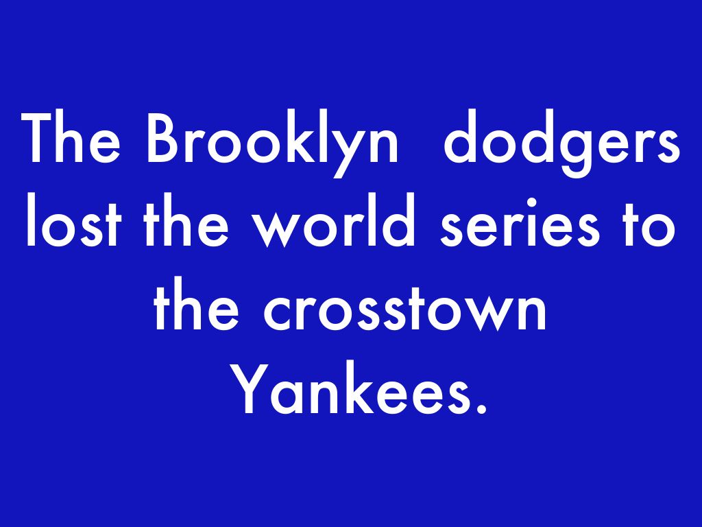 The Brooklyn dodgers lost the world series to the crosstown Yankees.