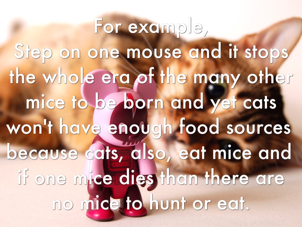 For example, Step on one mouse and it stops the whole era of the many other mice to be born and yet cats won't have enough food sources because cats, also, eat mice and if one mice dies than there are no mice to hunt or eat.