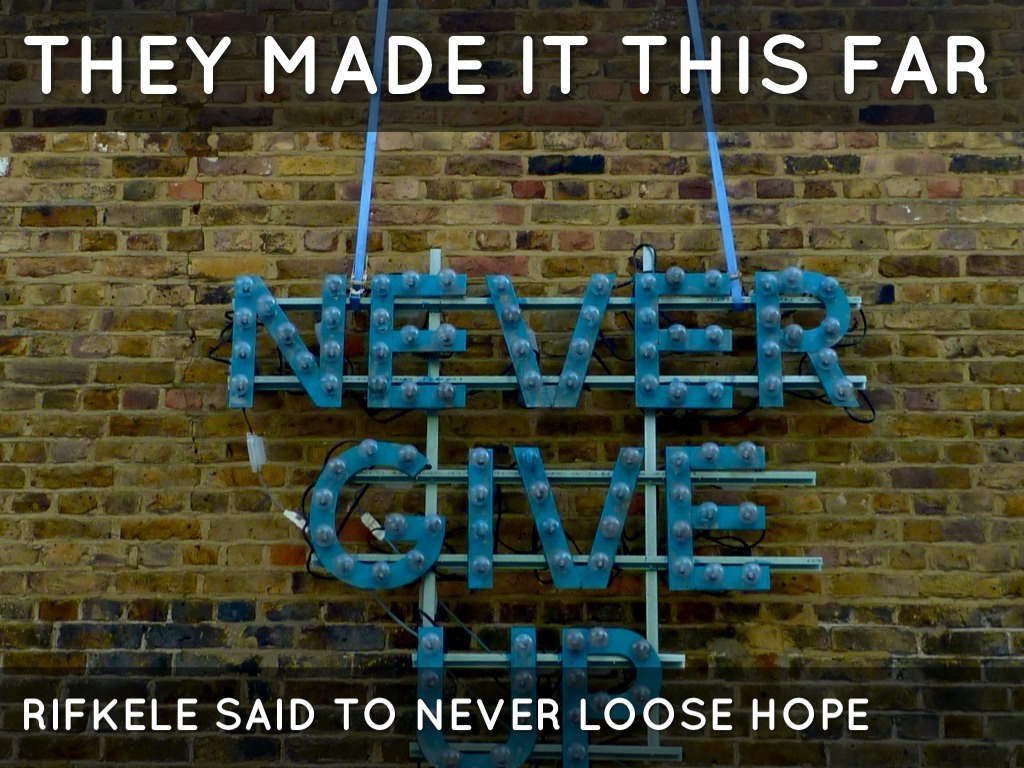 RIFKELE SAID TO NEVER LOOSE HOPE