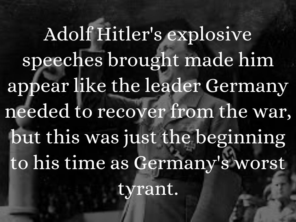 Adolf Hitler's explosive speeches brought made him appear like the leader Germany needed to recover from the war, but this was just the beginning to his time as Germany's worst tyrant.
