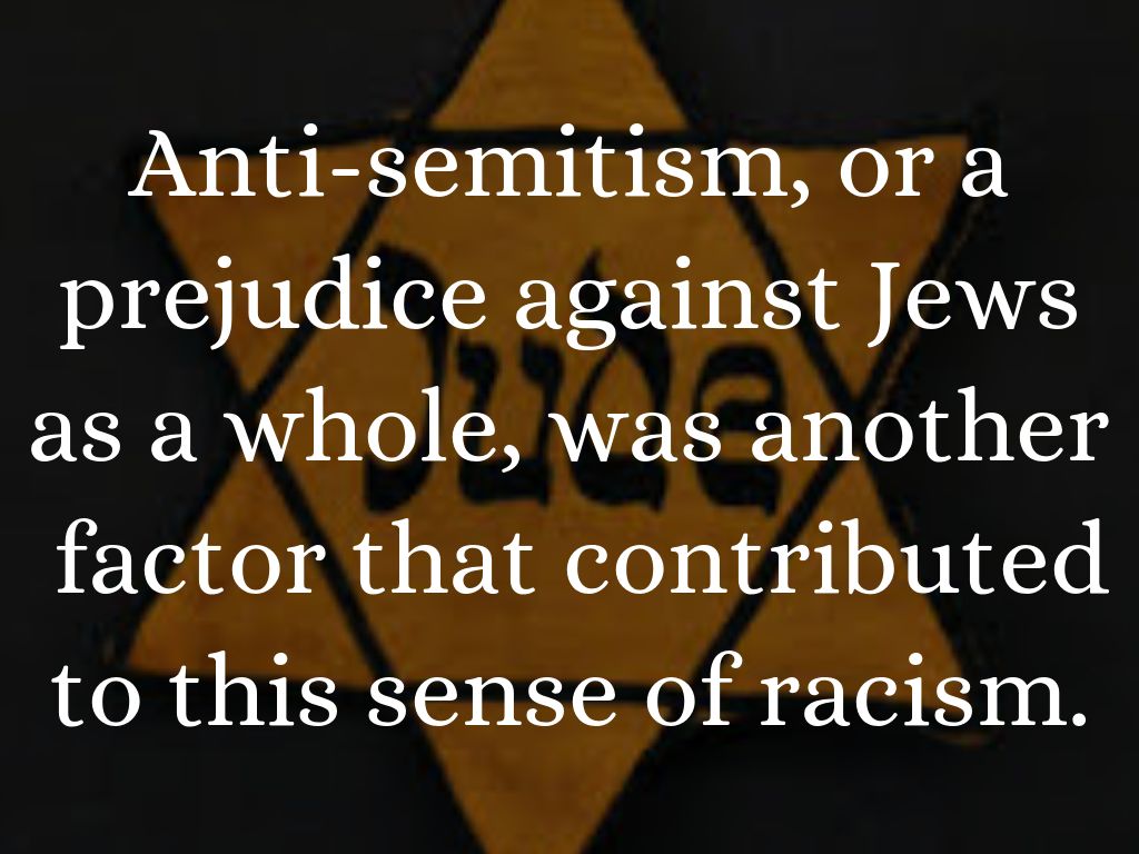 Anti-semitism, or a prejudice against Jews as a whole, was another factor that contributed to this sense of racism.