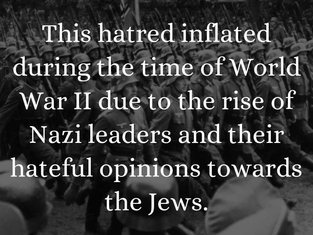 This hatred inflated during the time of World War II due to the rise of Nazi leaders and their hateful opinions towards the Jews.