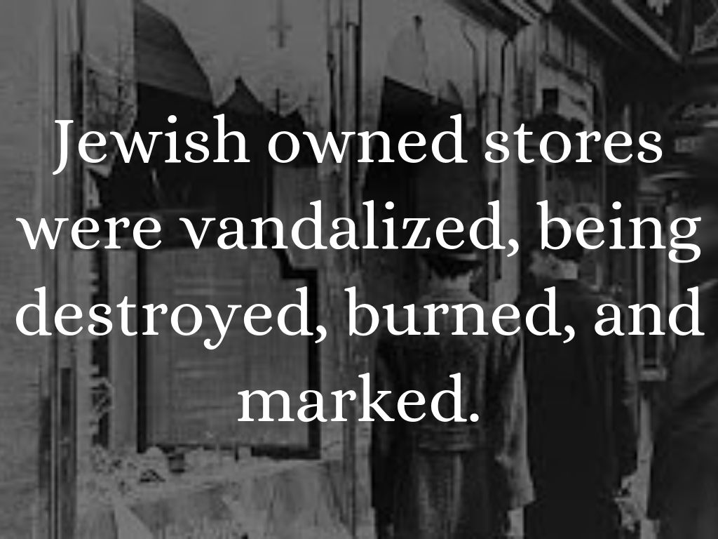 Jewish owned stores were vandalized, being destroyed, burned, and marked.