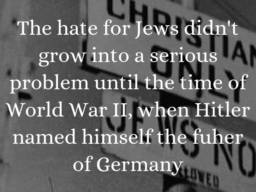 The hate for Jews didn't grow into a serious problem until the time of World War II, when Hitler named himself the fuher of Germany