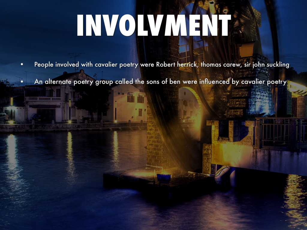 • People involved with cavalier poetry were Robert herrick, thomas carew, sir john suckling