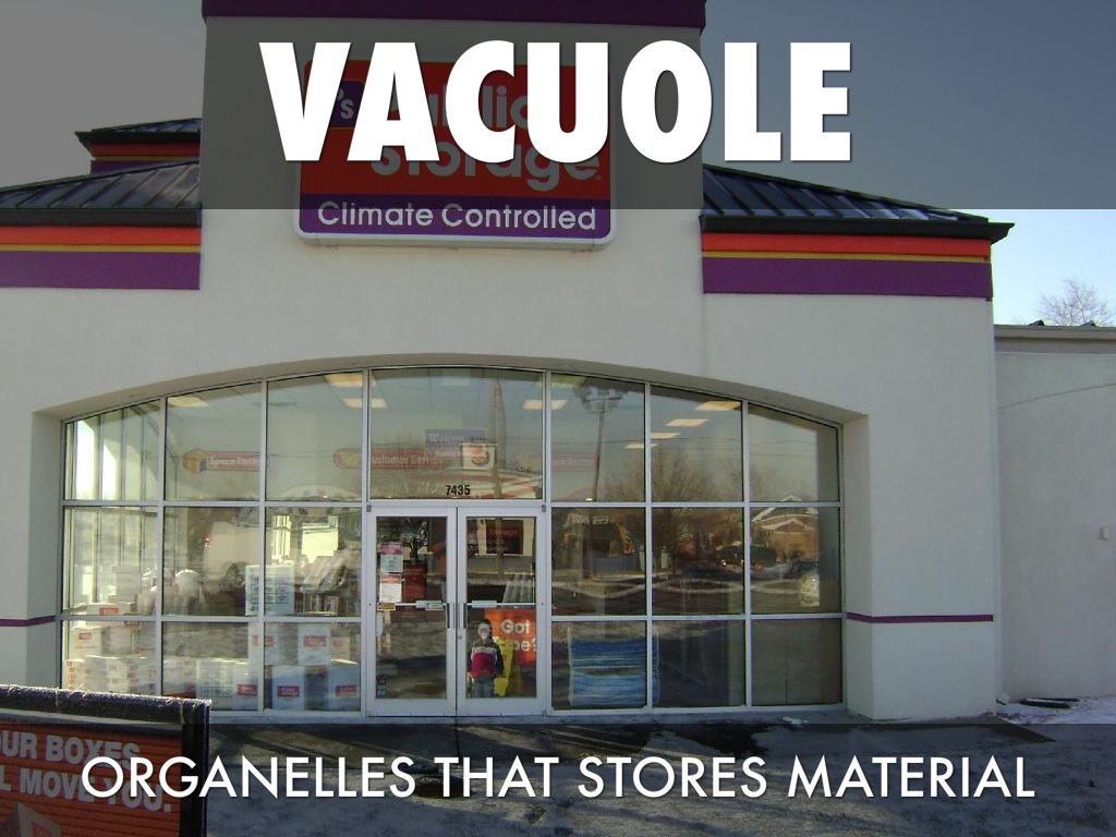 The vacuole stores material much like how public storage stores material for the city and residence.