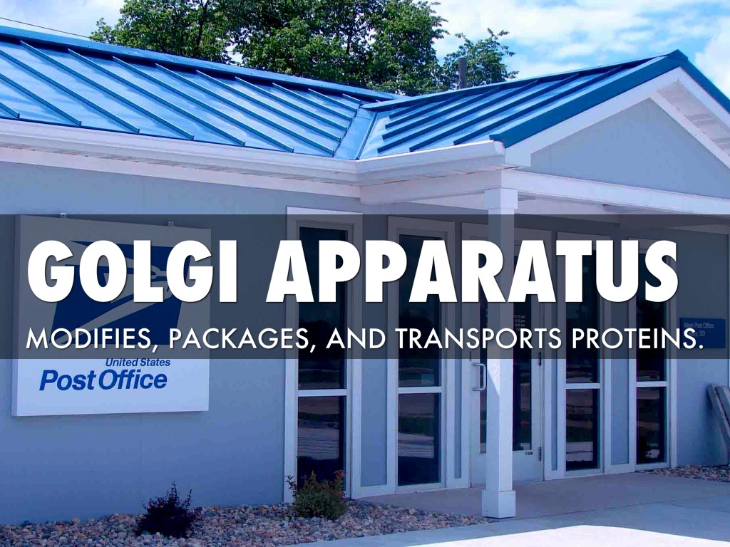 The post office packages and transports deliveries, like the Golgi apparatus modifies, packages, and transports proteins.