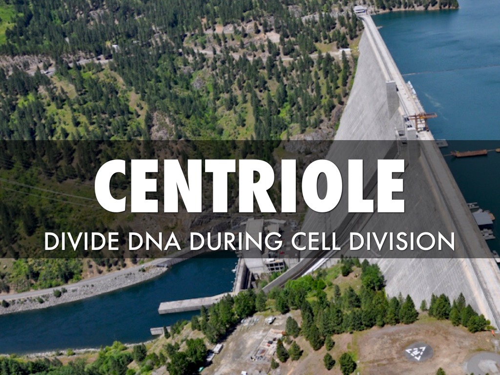 A dam divides the city from the lake, like a centriole divides DNA during a cell division.