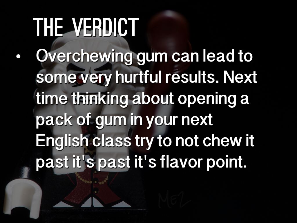 • Overchewing gum can lead to some very hurtful results. Next time thinking about opening a pack of gum in your next English class try to not chew it past it's past it's flavor point.