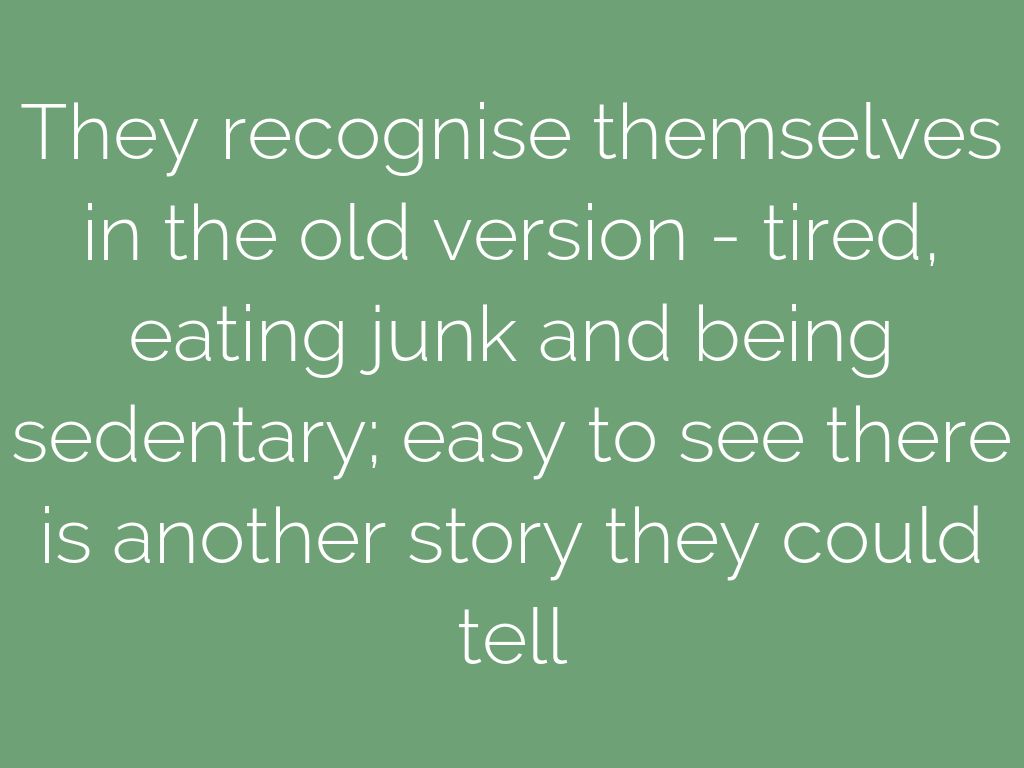 They recognise themselves in the old version - tired, eating junk and being sedentary; easy to see there is another story they could tell