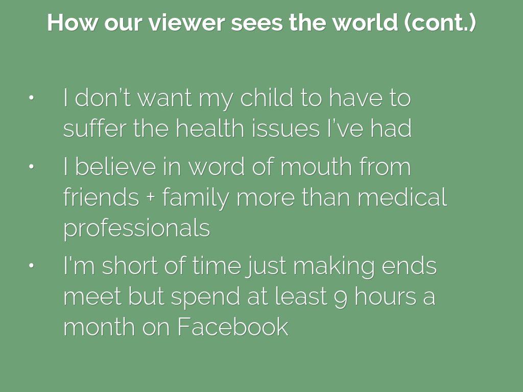 - I believe in word of mouth from friends + family more than medical professionals