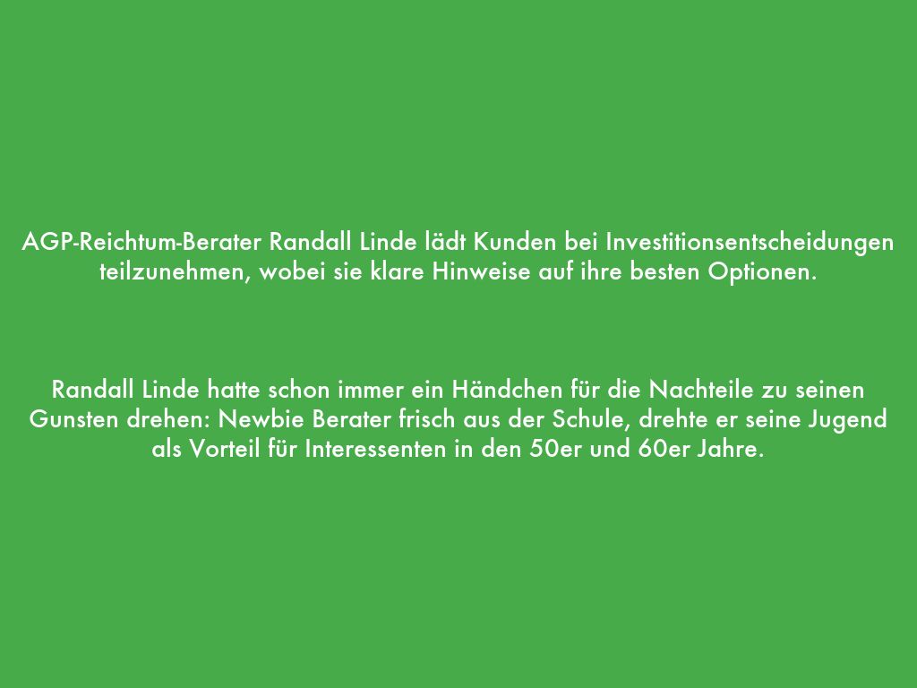 AGP-Reichtum-Berater Randall Linde lädt Kunden bei Investitionsentscheidungen teilzunehmen, wobei sie klare Hinweise auf ihre besten Optionen.