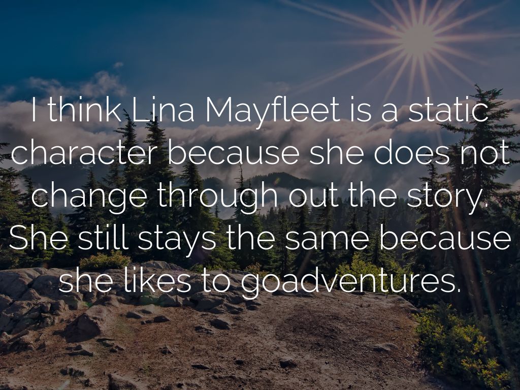 I think Lina Mayfleet is a static character because she does not change through out the story. She still stays the same because she likes to goadventures.