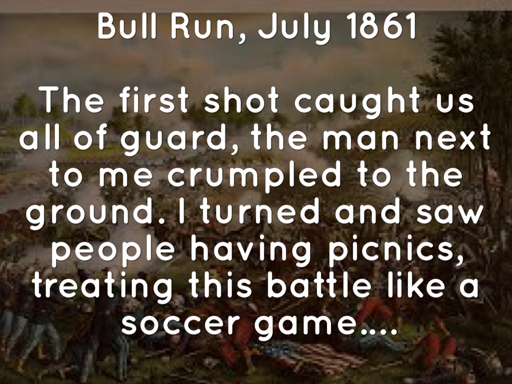 The first shot caught us all of guard, the man next to me crumpled to the ground. I turned and saw people having picnics, treating this battle like a soccer game.