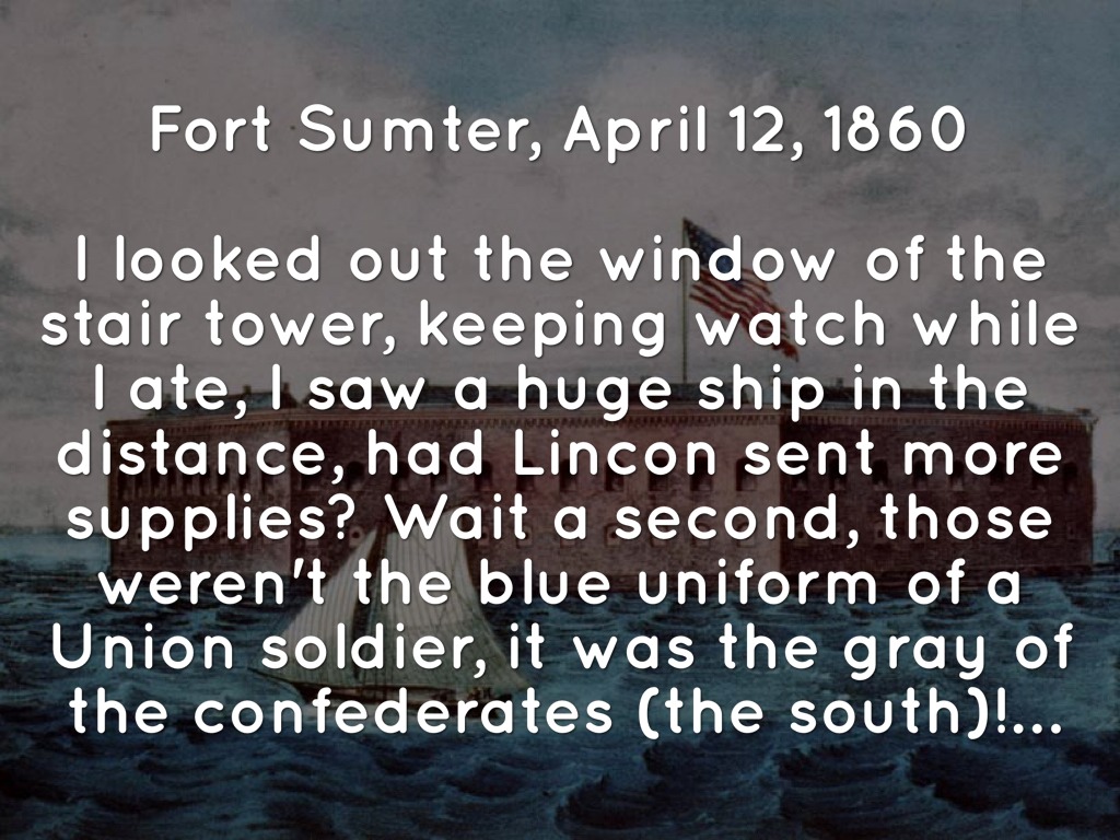 That day the confederates attacked Fort Sumter, they gunned the fort for 34 hours until the Union (the north) troops surrendered.