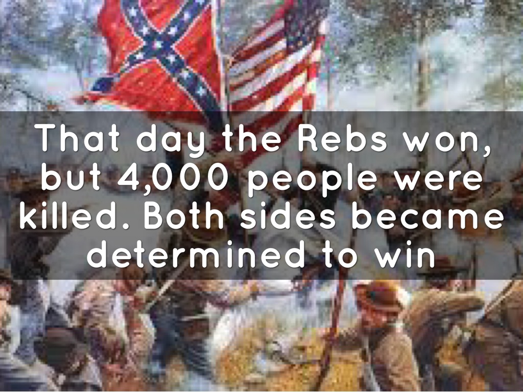 That day the Rebs won, but 4,000 people were killed. Both sides became determined to win
