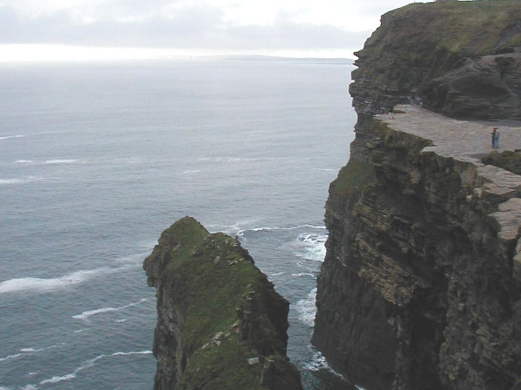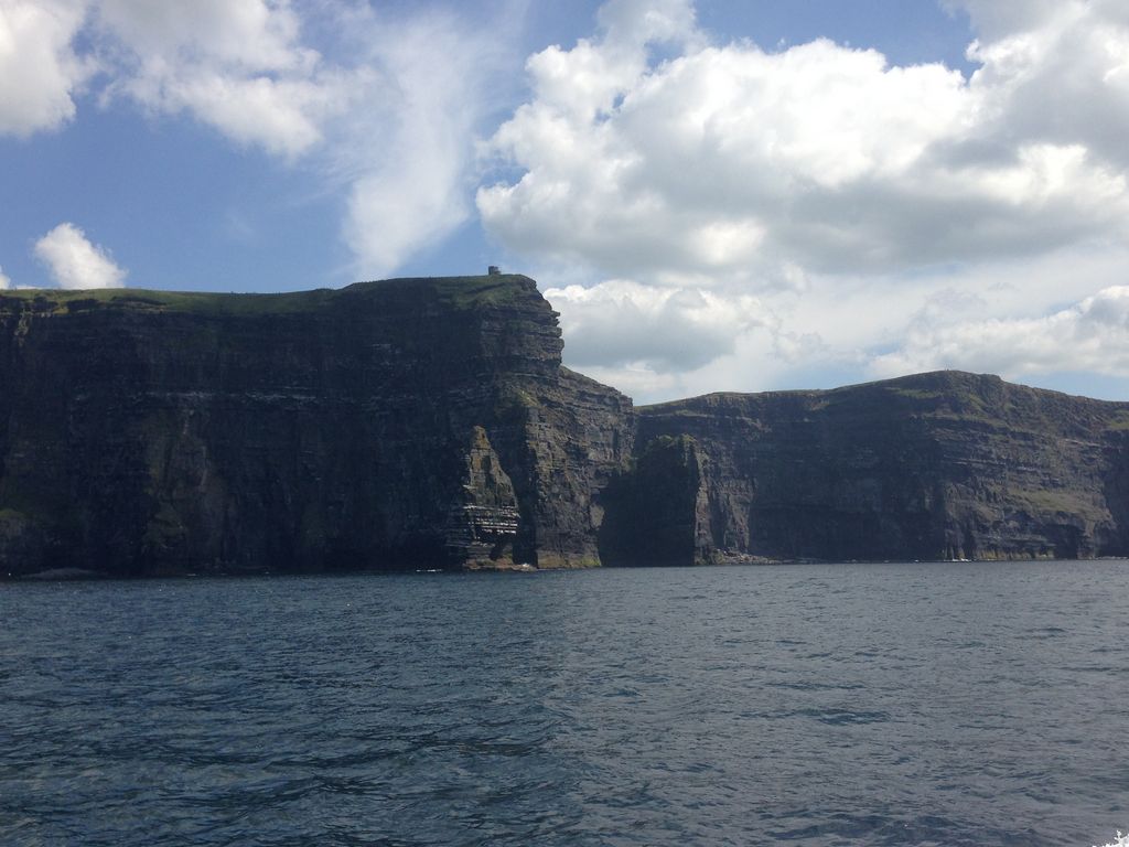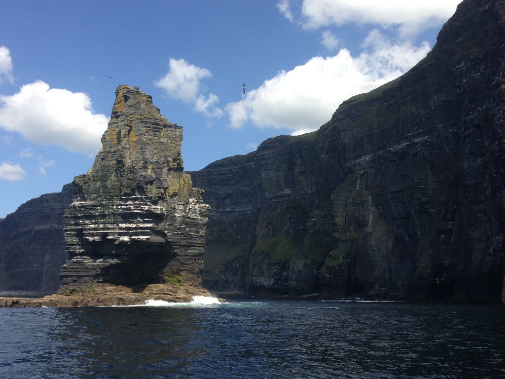 The Cliffs of Moher, Co Clare, Ireland as seen from the Atlantic ocean and from land.