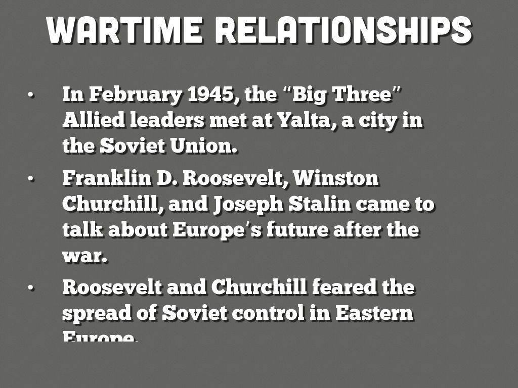In February 1945, the “Big Three” Allied leaders met at Yalta, a city in the Soviet Union.