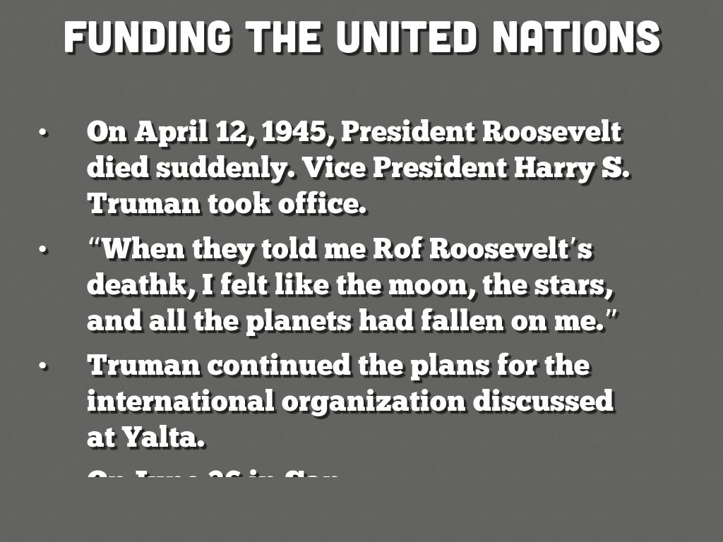 Truman continued the plans for the international organization discussed at Yalta.