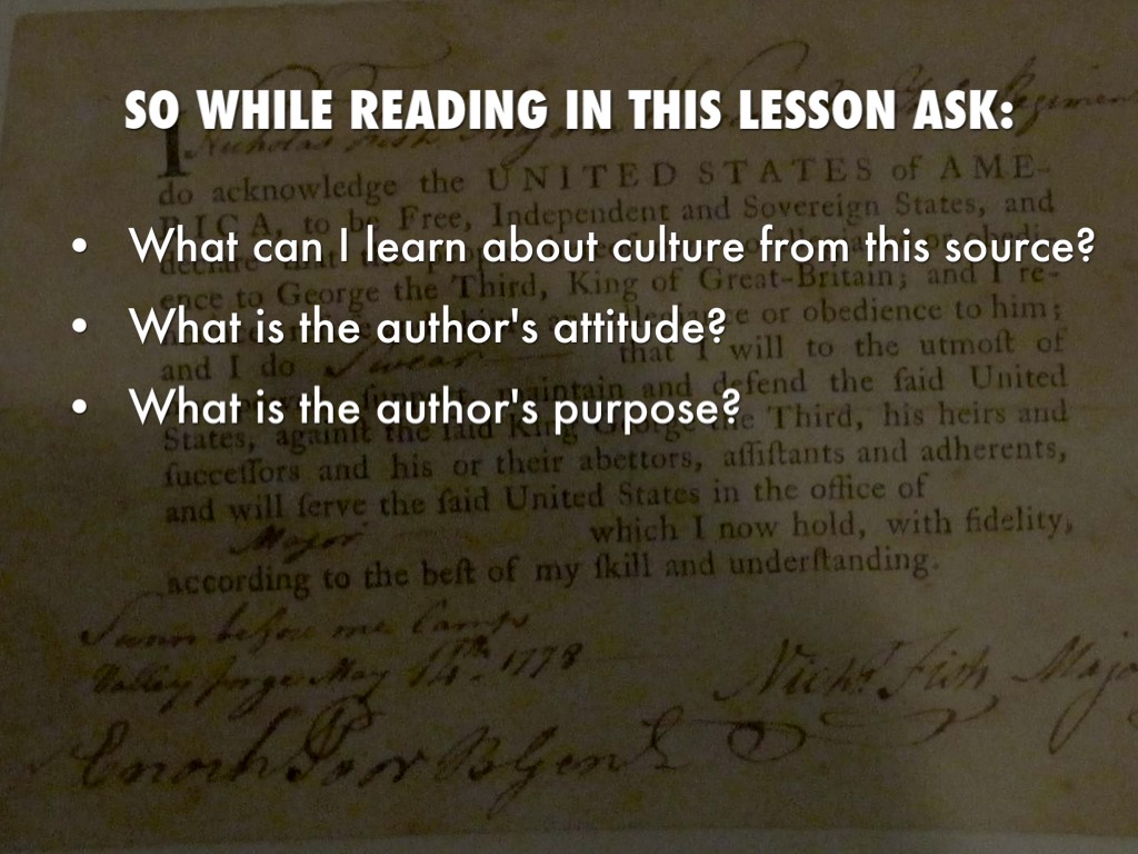 IS ALSO IMPORTANT IN READING PRIMARY SOURCES