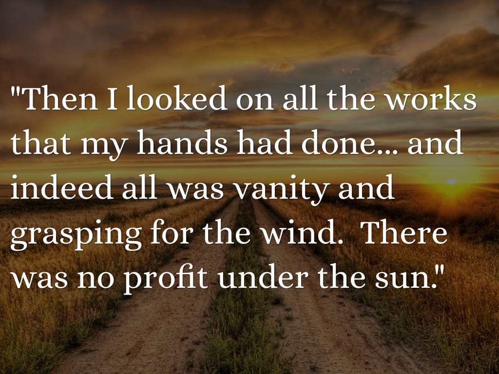 "Then I looked on all the works that my hands had done... and indeed all was vanity and grasping for the wind. There was no profit under the sun."