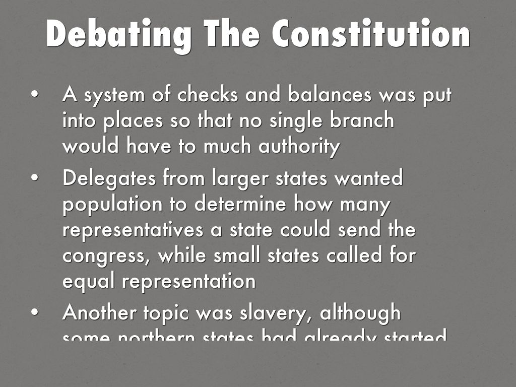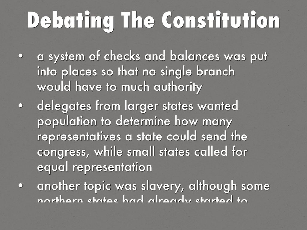 another topic was slavery, although some northern states had already started to outlaw the practice, they went along with the southern states' insistence that slavery was an issue for individual states to decide and should be kept out of the constitution