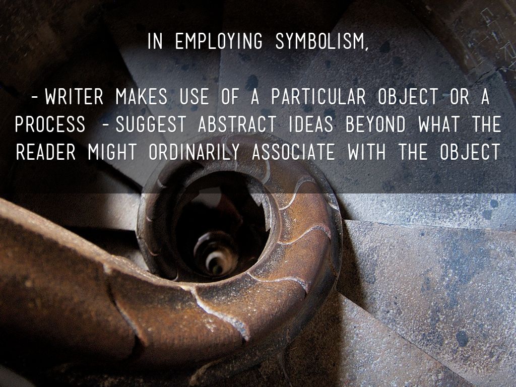 -writer makes use of a particular object or a process -suggest abstract ideas beyond what the reader might ordinarily associate with the object
