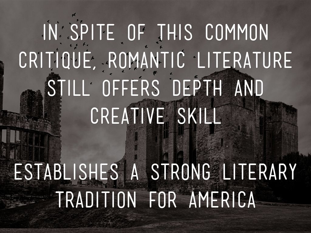 In spite of this common critique, romantic literature still offers depth and creative skill
